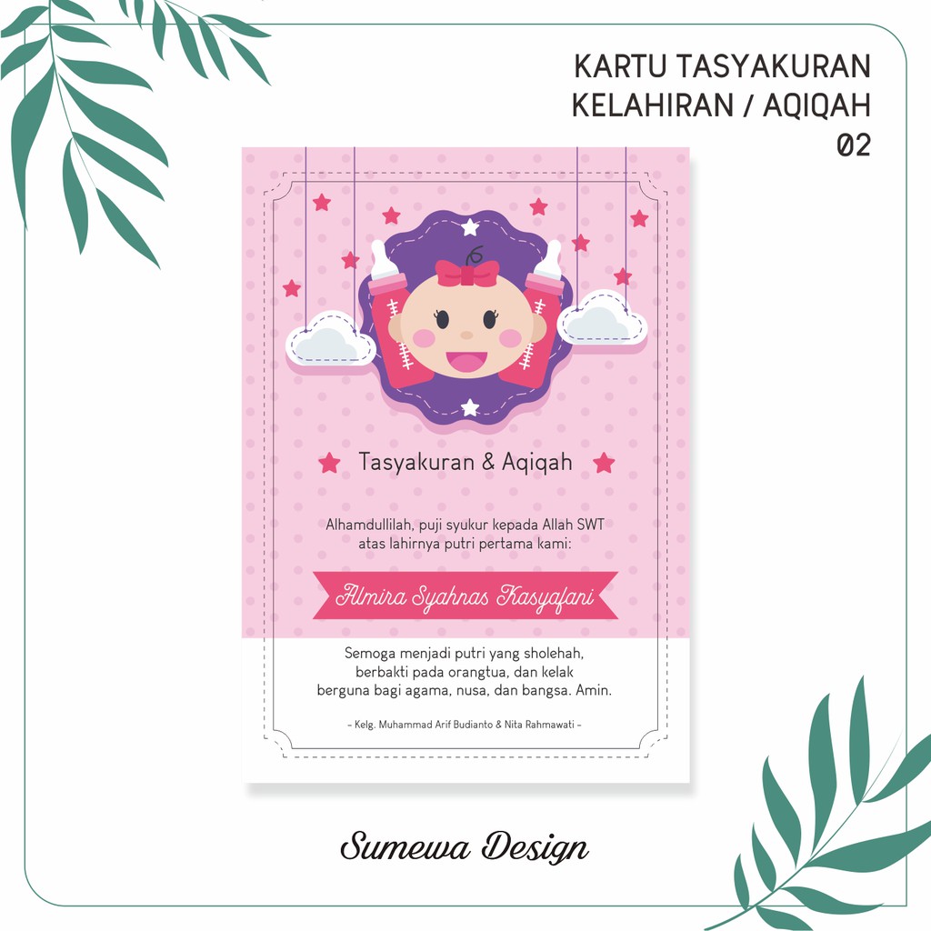 Semoga ini bermanfaat buat anda. Setiap orang tua mendambakan bayi perempuan yang lucu dan imut. Contoh amplop undangan aqiqah harga template undangan. Sedang cari ucapan bernuansa islam ungkapan rasa syukur kelahiran anak? Kamu pun bersyukur kepada sang pemberi, dan dia dapat mencapai.